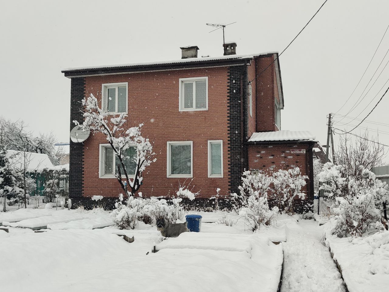 Двухэтажный кирпичный дом на фундаменте из жб блоков, утеплен, обшит американскими панелями (существенная экономия по оплате эл. энергии), два варианта отопления: электрическое и печь. Металлические двери, пластиковые окна, большой подвал. Водоснабжение центральное, септик. Сан. узел раздельный, водонагреватель для горячей воды. Два входа в дом, лестница на второй этаж. Комнаты светлые, теплые (юго-запад). Большая кухня с гостиной. Гараж на две машины, парковочное место на территории на 3-4 машины. Улица тупиковая, посторонние не ходят. На территории есть сарай для садовых инструментов, дров, две теплицы, участок разработан. Имеются плодово-ягодные кустарники и деревья. Место для отдыха. Со стороны дороги металлический забор с откатными и распашными воротами.