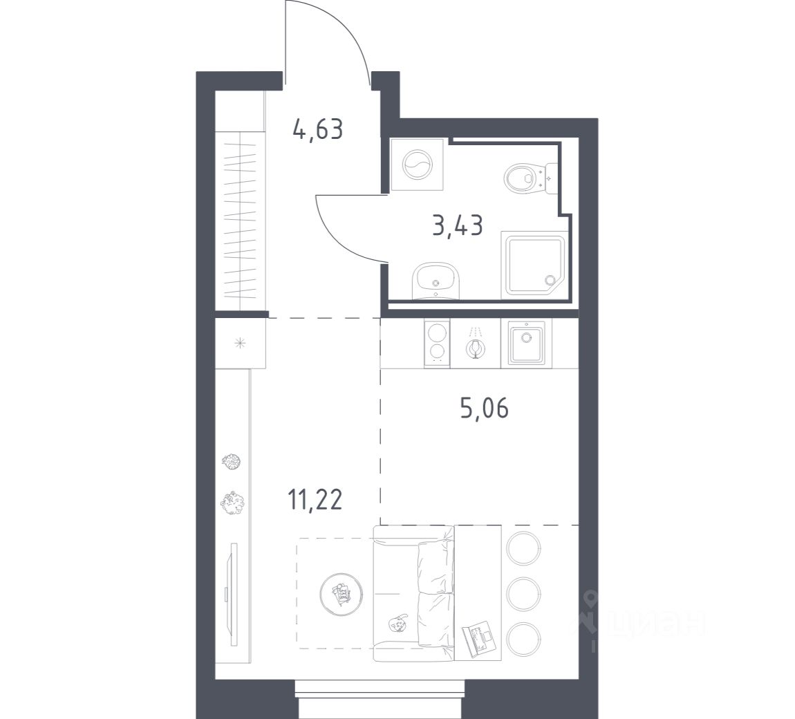 Общая площадь24,34 м2
