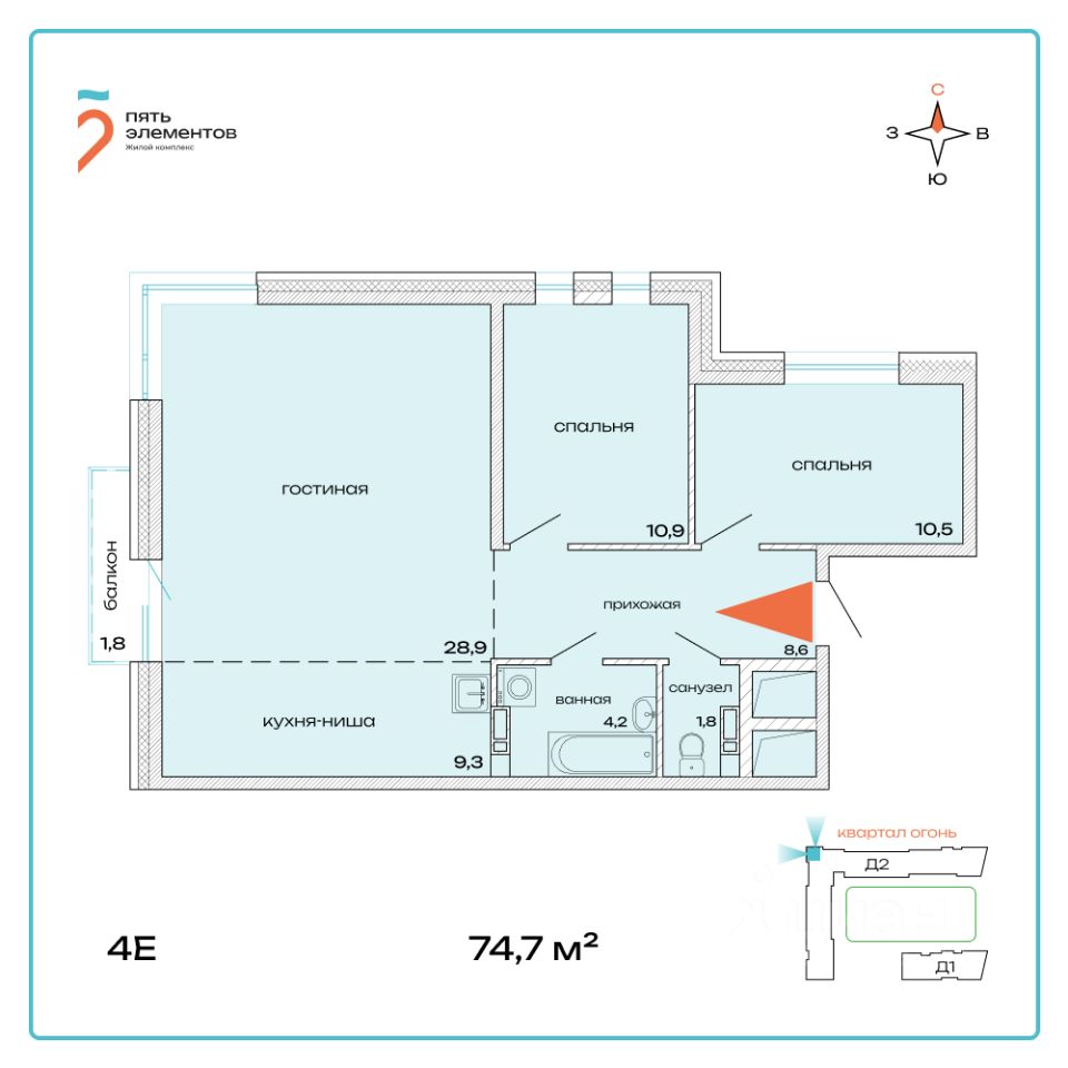 Общая площадь74,7 м2