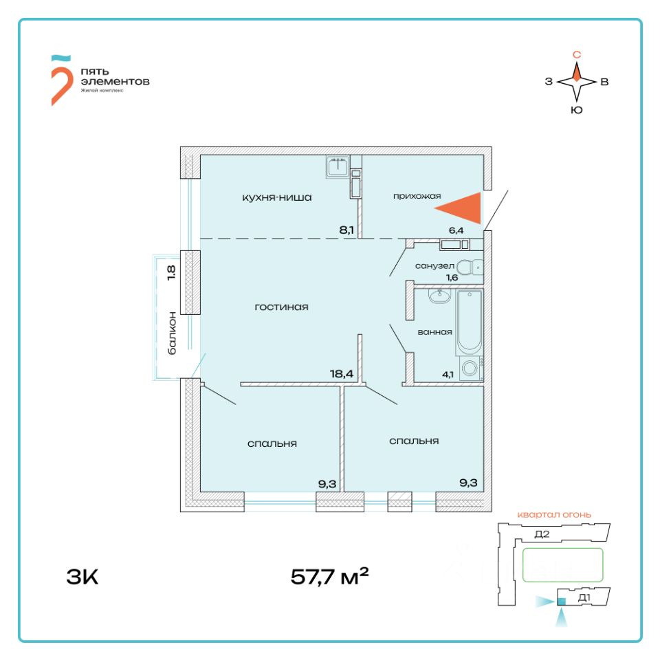 Общая площадь57,7 м2