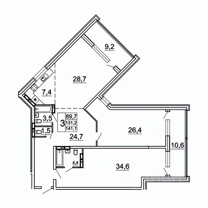 продам 3-к, Лесная, 1в/122 079 076 ₽